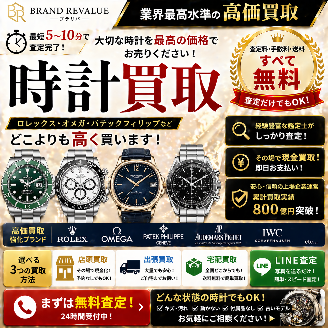 CMで話題、口コミ4.5以上!最高値を最速5分で。キャンセル・送料も無料。全国無料出張し対応。