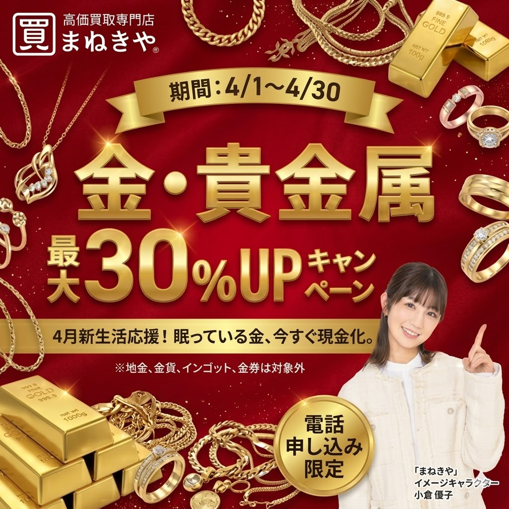 高価買取専門店「まねきや」は、金・プラチナなどの貴金属やダイヤモンド、ブランドバッグ・高級時計といったハイブランド品の高価買取に強みを持つ全国展開の買取サービスです。大泉学園駅周辺には店舗がありませんが、出張買取・宅配買取に対応しているため、ご自宅にいながら査定から売却まで完結できる利便性が魅力です。重たい品物や点数が多い場合でも持ち運ぶ必要がなく、忙しい方や外出が難しい方でも安心して利用できます。