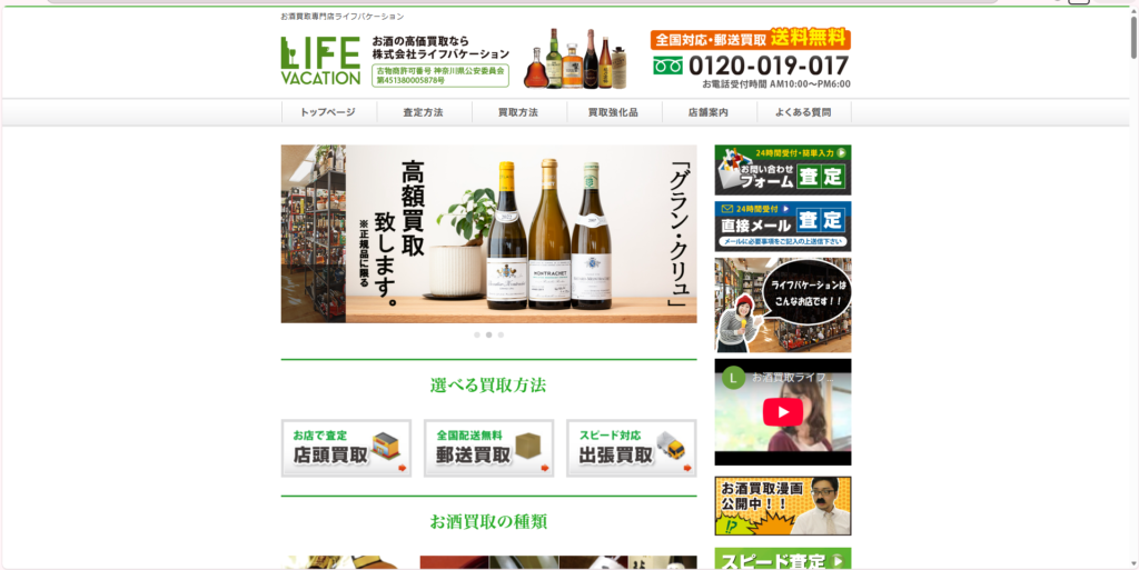 ライフバケーション京都店は、京都府内でお酒買取を専門に行う店舗であり、ウイスキーやブランデー、ワイン、シャンパン、日本酒など多種多様なお酒を1本から買取しています。特にジャパニーズウイスキーの限定品や希少なバーボンウイスキーについては強化買取をしており、状態の悪いラベルや古酒も対象とするなど、幅広いニーズに応えるサービスを提供しています。